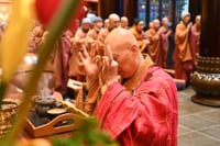 大众一起至诚恳切,向师父拜年。向师父顶礼三拜,一拜...